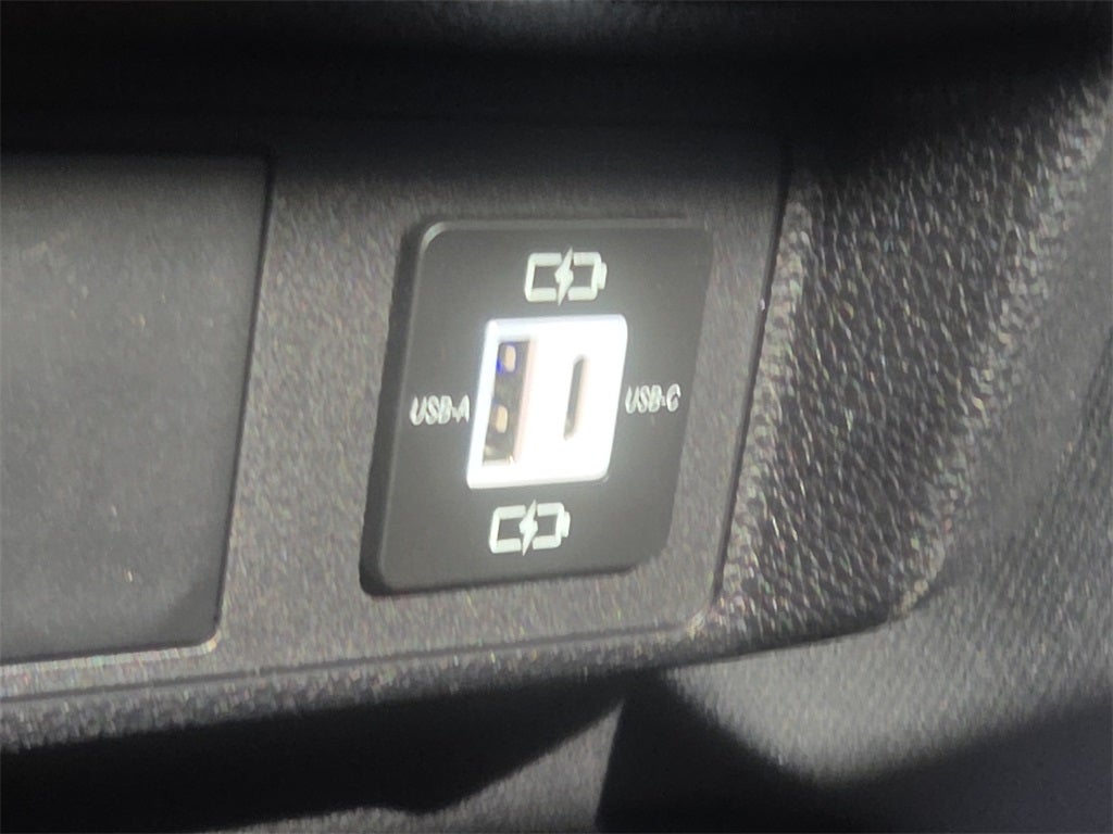 Dual illuminated rear center console-mounted USB charging ports.