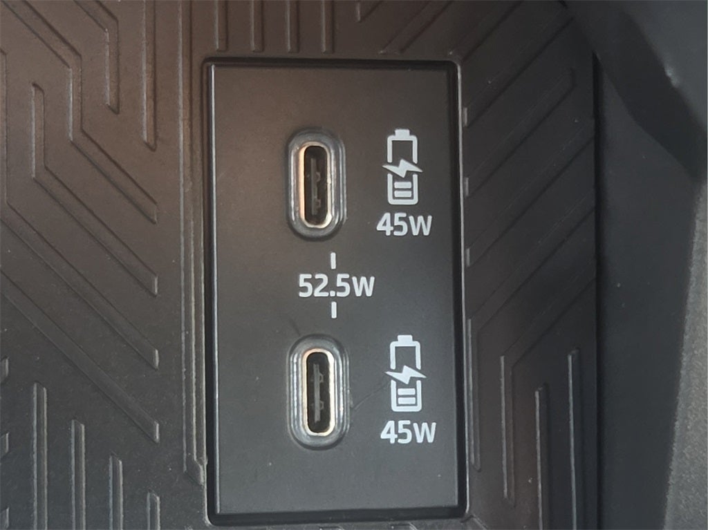 Dual illuminated rear center console-mounted USB charging ports.