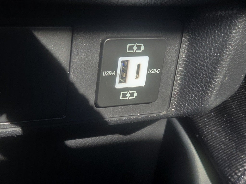 Dual illuminated rear center console-mounted USB charging ports.